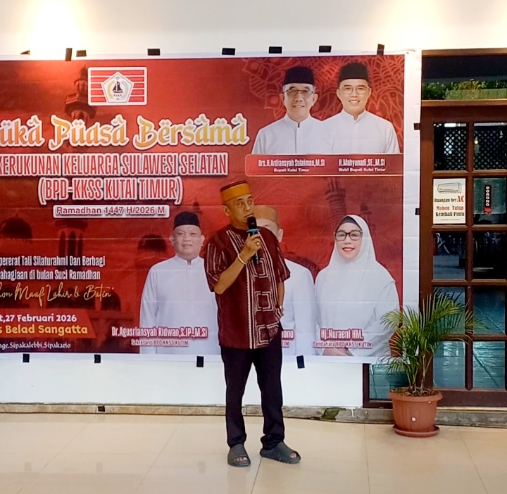 Makineksis.com, Kutai Timur - Bulan penuh rahmat, keberkahan dan ampunan Bulan Suci Ramadhan 1447 Hijriah / 2026, atas inisiatif Ketua Badan Pengurus Daerah (BPD) Kerukunan Keluarga Sulawesi Selatan (KKSS) Kabupaten Kutai Timur (Kutim) Suharman, Chono didampingi Bendahara, Hj Nuraeni, Dewan Penasehat Herlang didukung segenap keluarga besar unsur pengurus menggelar safari ramadhan, jumat (27/2) 2026 di Cafe Hotel Teras Balad