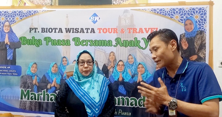 Makineksis.com, Kutai Timur - Momentum bulan suci ramadhan 1447 H /2026 turut dimaknai oleh pimpinan cabang PT Biota Wisata Tour & Travel Sangatta Kabupaten Kutai Timur (Kutim), Hj Nuraeni HM bersama jajaran dengan menggelar buka puasa bersama (bukber) dirangkaikan santunan dalam bentuk Tunjangan Hari Raya "THR" kepada kalangan ratusan anak yatim.