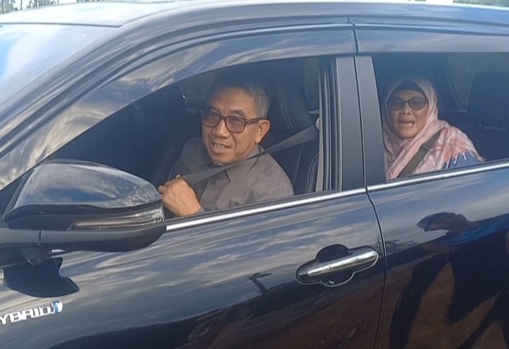 Keterangan foto : Kesederhanaan Bupati H Ardiansyah Sulaiman dan istri Umi Hj Robiah saat menuju grand opening Jati Cafe And Resto hanya menggunakan kendaraan Toyota Inova Reborn mobil ikonnya keluarga Indonesia