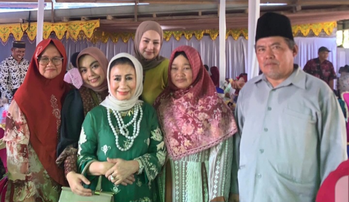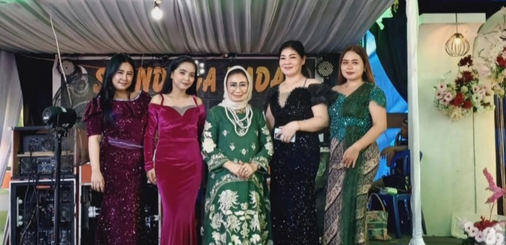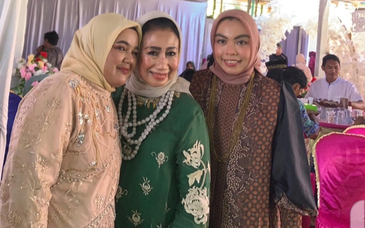 Keterangan foto : Momen kesemarakan resepsi pernikahan Nabila- Abdullah dengan hadirnya Bunda Hj Encek UR Firgasih bersama sang putri Rizky Amalia dan rombongan