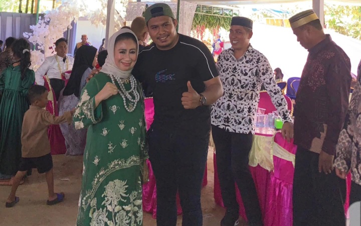 Hadirnya Bunda Hj Encek Firgasih kian memeriahkan perhelatan resepsi pernikahan di Desa Pelawan Kecamatan Sangkulirang Kabupaten Kutim