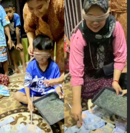 Keterangan foto : Permainan menyendok uang