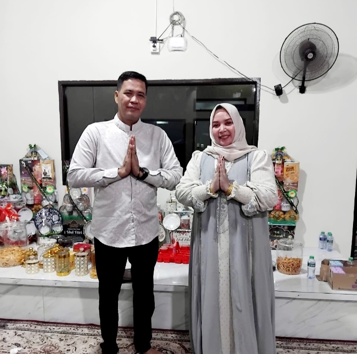 Keterangan foto : Kades Sepaso Timur Budhi Yulidhar bersaman istri sekaligus KetuaTP PKK Desa, Sri Handayani mengucapkan selamat Idul Fitri kepada segenap masyarakat didesanya, secara luas Kutim