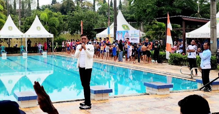 Keterangan foto : (ist) Kadispora Kutim Basuki saat membuka ajang kejuaraan renang Sprint Race III tahun 2025 di Kolam Renang Townhall ( Swarga Bara), Sangatta bawa kabar gembira akan dibangun kolam renang kelas internasional ke depannya di Stadion Kudungga