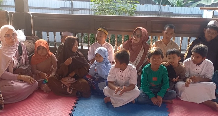 Keterangan foto : Tampak Hj Nuraeni peduli dengan para anak yatim yang bersiap menerima amplop THR dari DPD KKDB Kutim